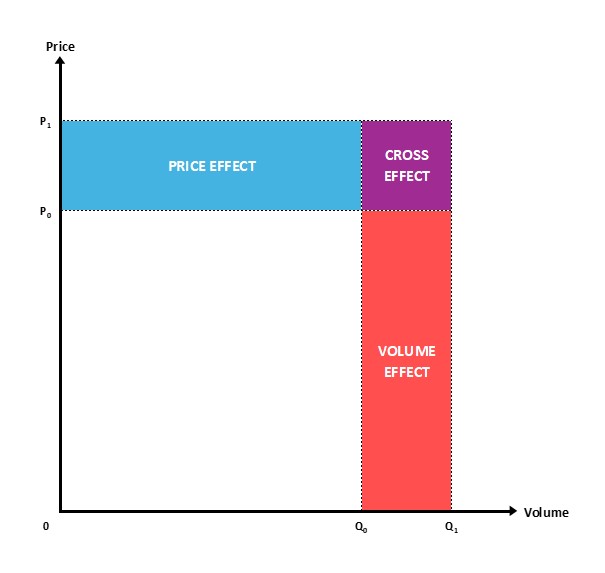 • Volume Effect = (Q₁ – Q₀) × P₀ “What would we have gained/lost if only volumes had changed?”